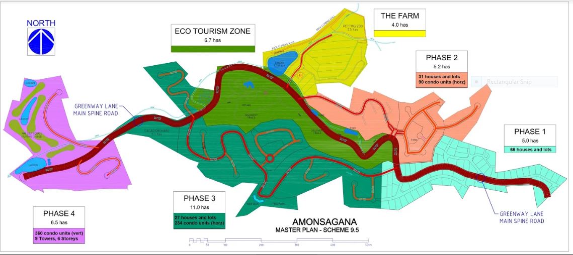 AMONSAGANA Covering an area of 32 hectares, AMONSAGANA will be developed in four phases, each being named to honor and celebrate one of the four elements. Each phase is designed as a private enclave of homes, connected yet distinct from one another. More than 40 percent of the land is dedicated to roads, parks, gardens, water catchment, organic farm, nature reserve and communal amenities. The infrastructure includes water, electricity, telephone, cable television and data supply lines as well as gated access and perimeter security. Eco-friendly concrete roads are built to maintain the hilly terrain yet designed with safety as a priority.