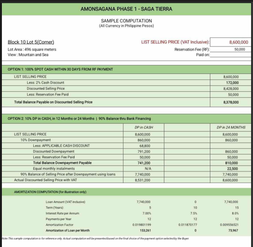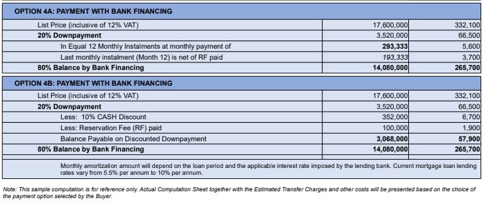 * Reservation Fee to be off-set only against the last installment payment of down payment.