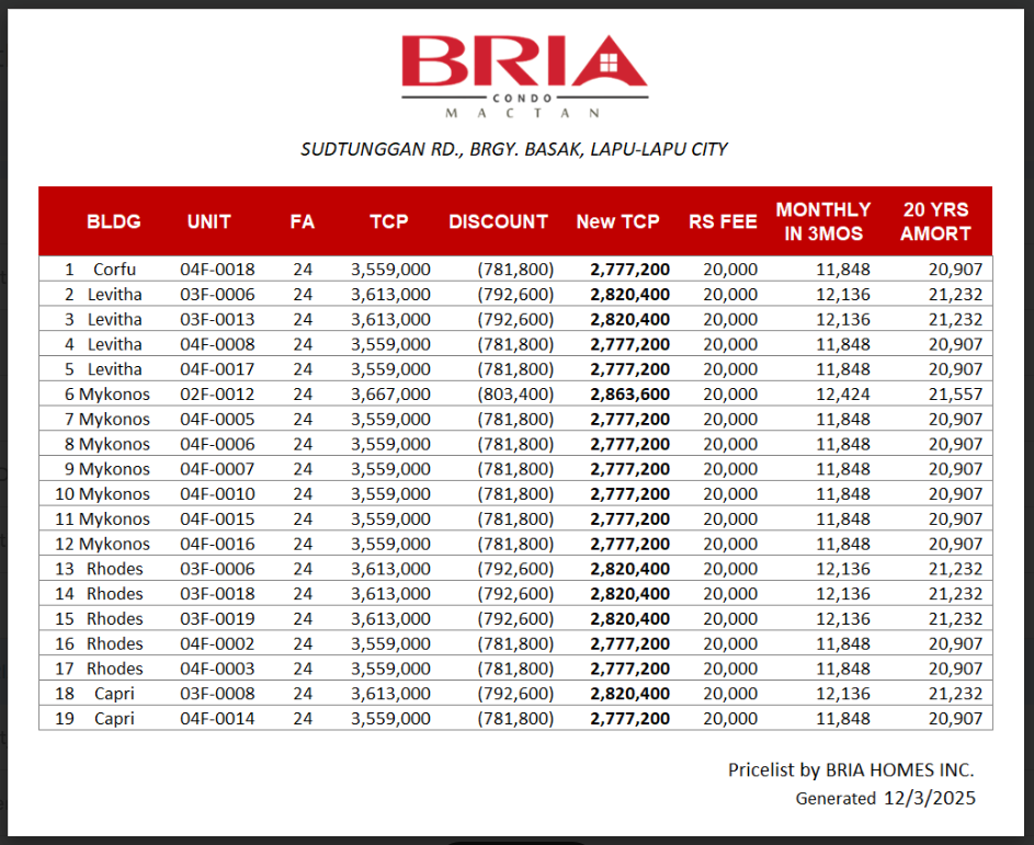 BRIA Flats is a 4-Storey Walk up Condominium with all Studio Units, very affordable and accessible…