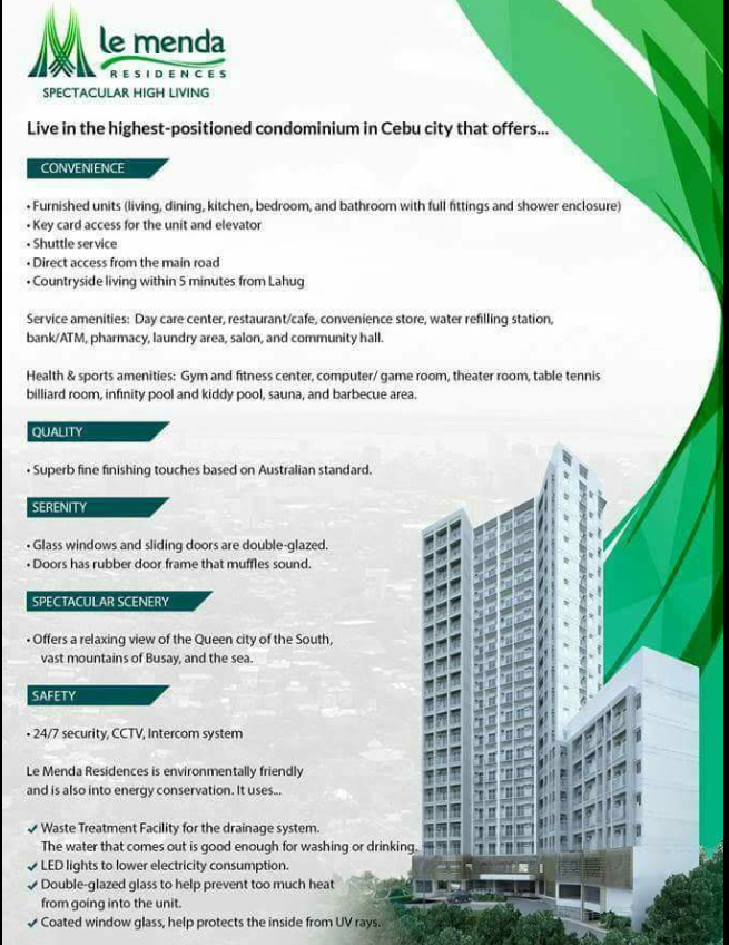 LE MENDA RESIDENCES BUSAY – is located in Plazaville Subd. Veterans Drive, Busay, Cebu City. . .