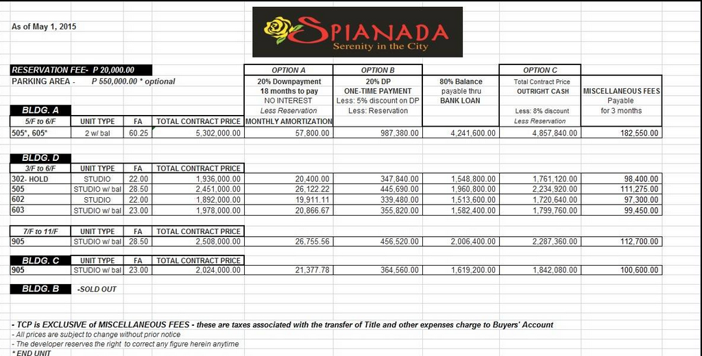 Option C: Total Contact Price – Outright Cash less: 8% Discount = P 4,525,260.00