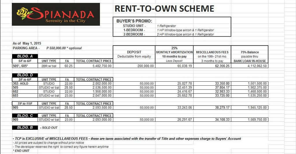 30% DP – 18 mos. to pay no Interest –Less Reservation Fee = P 19,844.44mo.