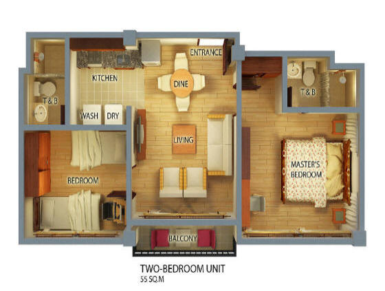 2 BR Unit with Balcony: (Building A)