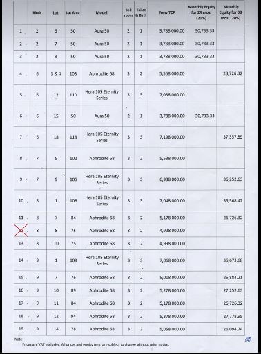 ALBERLYN BOX HILL RESIDENCES – ANNEX ( Price as of Sept. 26, 2019 )