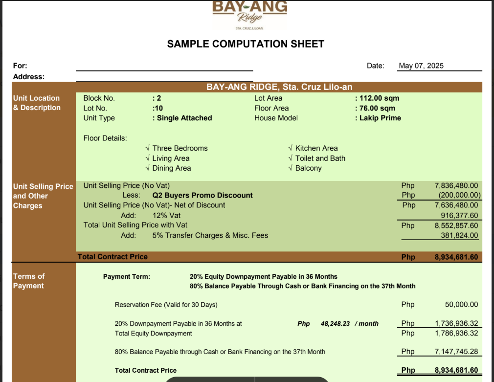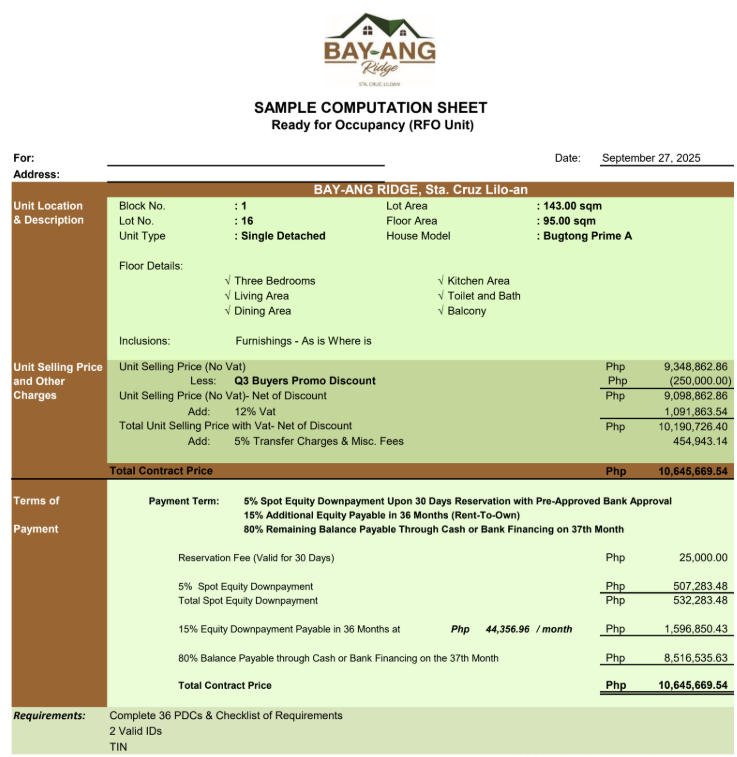 BUGTONG MODEL / SINGLE DETACHED ( Prime A)