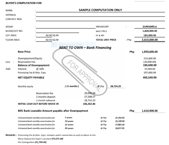 SAMPLE COMPUTATION: / With Down Payment Scheme: