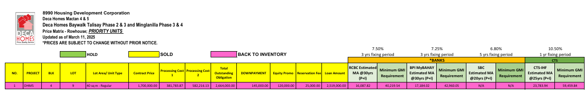 Monthly Dues – 56.00 per sq. m. ( monthly )