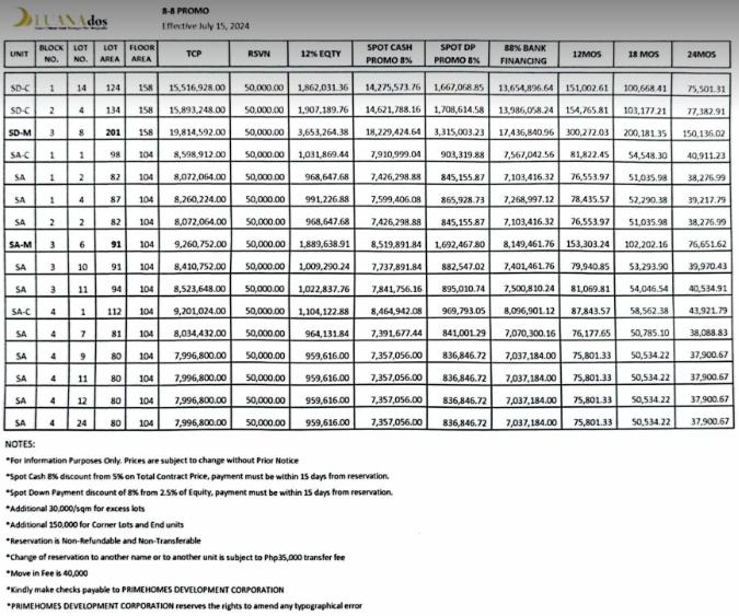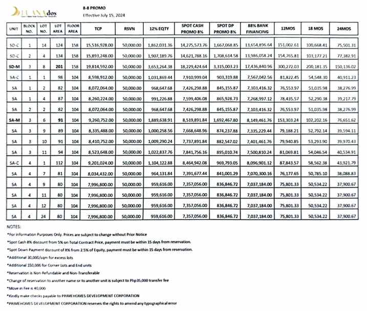 * PRIMEHOMES DEVELOPMENT CORPORATION reserves the right to amend any typographical error.