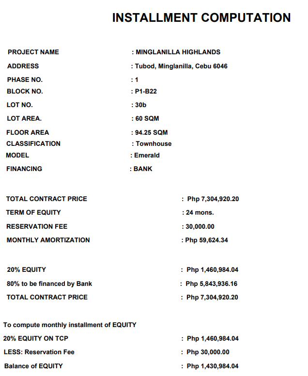 Reservation Fee: P 30,000.00
